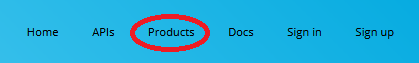 - Choose "Products" on the top menu. This will take you to the products page, which lists the